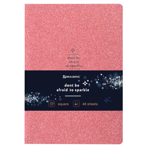 Тетрадь 48 л. в клетку обложка кожзам с блестками, сшивка, A5 (147х210мм), РОЗОВЫЙ, BRAUBERG SPARKLE, 403852 | код 403852 | BRAUBERG