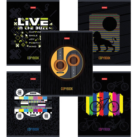Тетрадь А5 48 л. HATBER скоба, клетка, выборочный лак, Креатив (5 видов в спайке), 48Т5вмВ1 | код 113138 | HATBER