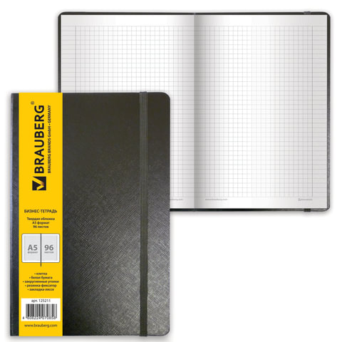 Блокнот А5 (148х218 мм), BRAUBERG Select, 96 л., зернистый кожзаменитель, резинка, клетка, черный, 125211 | код 125211 | BRAUBERG