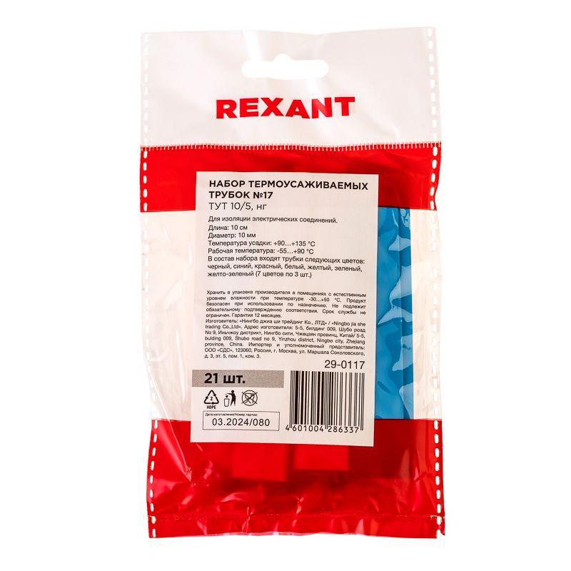 Набор термоусаживаемых трубок №17 ТУТ нг 10/5 мм, 7 цветов (упак. 21 шт. по 10 см) | код 29-0117 | REXANT