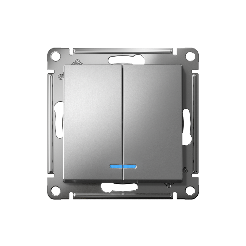 ATLASDESIGN 2-клавишный ВЫКЛЮЧАТЕЛЬ с подсветкой ,сх.5а, 10АХ, быстрозажимные клеммы,СТАЛЬ | код ATN000953S | Systeme Electric