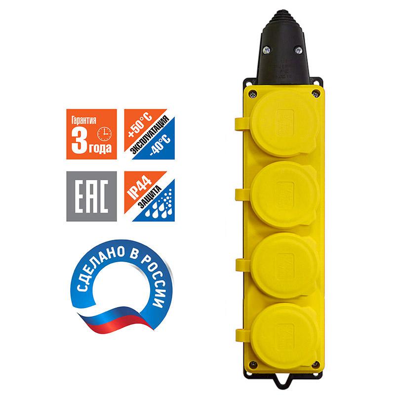 Колодка 4-х местная однофазная с заглушками КОМПАКТ каучук желтый | код 3084 | Universal