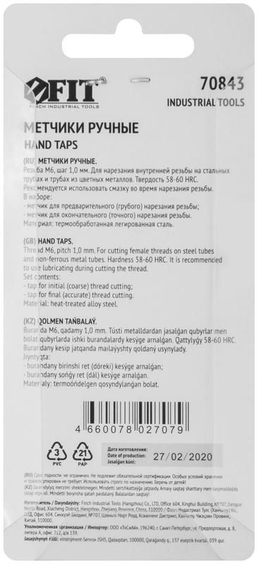 Метчики метрические, легированная сталь, набор 2 шт М6х1.0 мм | код 70843 | FIT