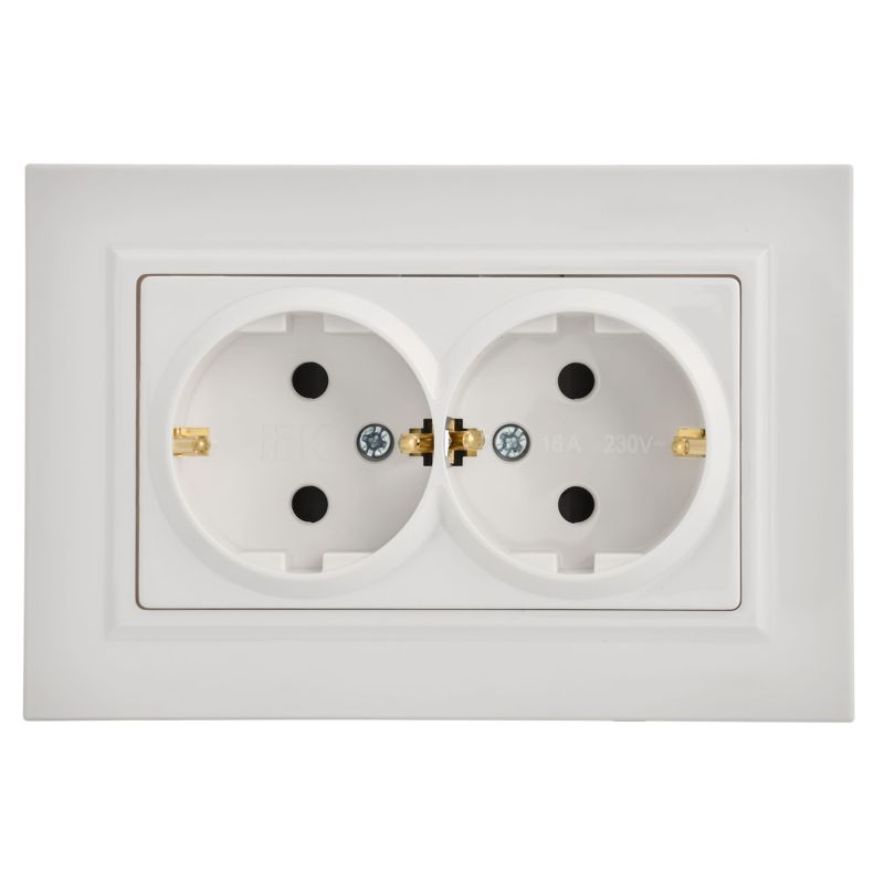 BRITE Розетка 2-местная с заземлением с защитными шторками плоская 16А в сборе РСшПл12-3-БрБ белый | код BR-R28-16-K01-F-PRO | IEK