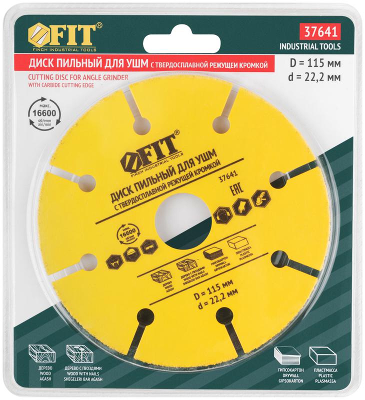 Диск пильный по дереву, посадочный диаметр 22.2 мм, карбидная режущая кромка 115 мм | код 37641 | FIT