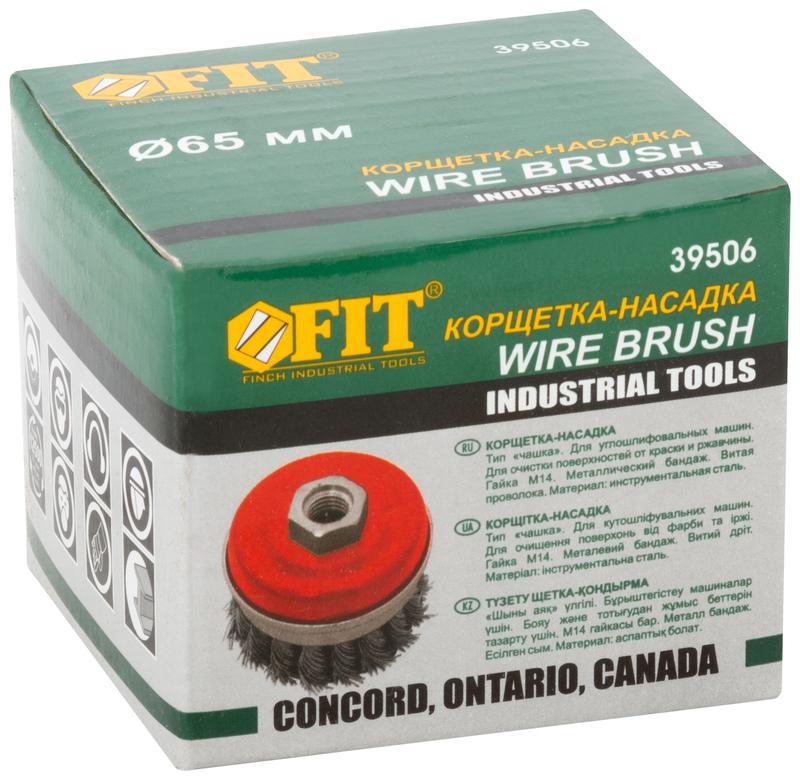 Кордщетка-чашка, гайка М14, стальная витая проволока с бандажом, Профи 65 мм | код 39506 | FIT