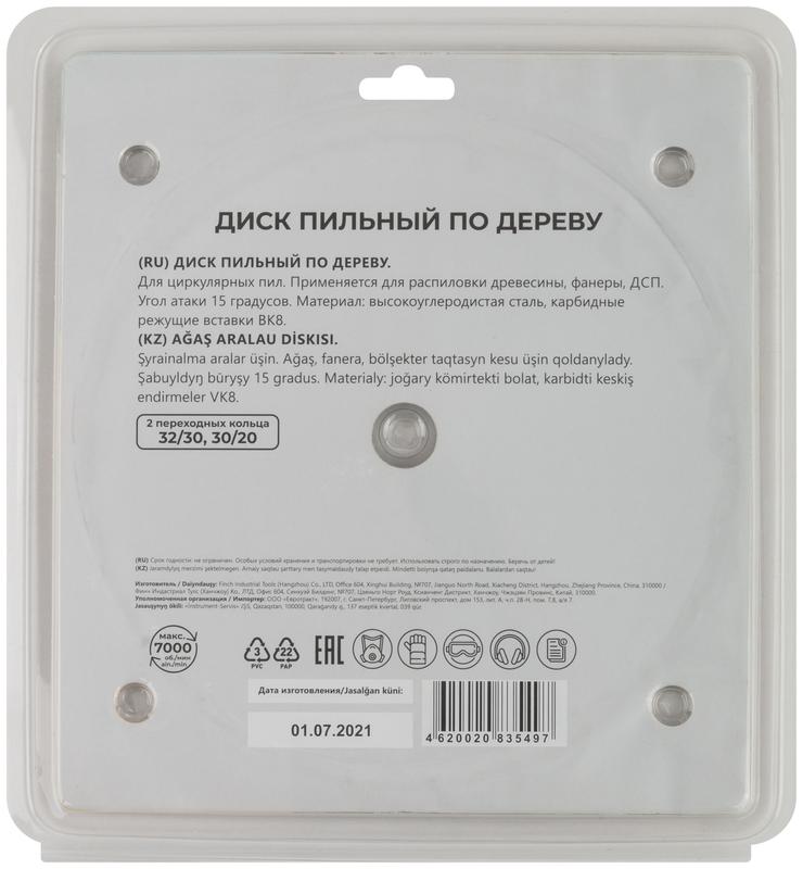 Диск пильный для циркулярных пил по дереву 200x32x24T + 2 кольца 32/30 и 30/20 мм | код 37665М | FIT