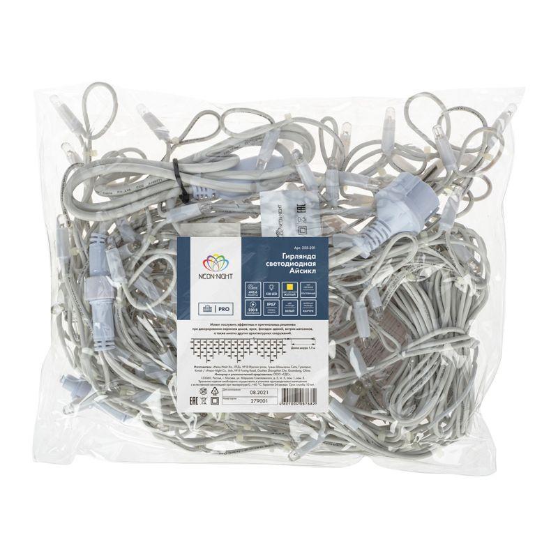Гирлянда Айсикл Бахрома светодиодный, 4,0 х 0,6 м, белый провод каучук, 230 В, диоды желтые, 128 LED | код 255-201 | Neon-Night