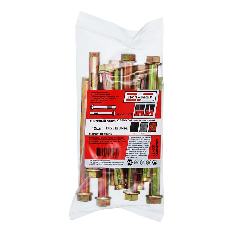 Болт анкерный 12х129 с гайкой (10шт) | код 124331 | Tech-KREP