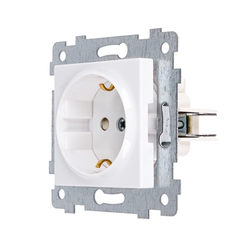Аксиома Механизм розетки одноместной с заземляющим контактом и шторкой скрытой установки РС16-454, слоновая кость | код 121003 | Кунцево-Электро