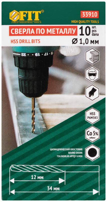 Сверла по металлу HSS с добавкой кобальта 5% Профи 1.0 мм (10 шт) | код 33910 | FIT