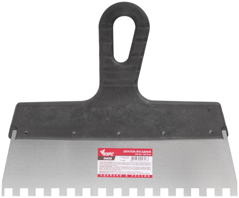 Шпатель фасадный нержавеющий зубчатый 250 мм / зуб 8 мм | код 6608 | FIT