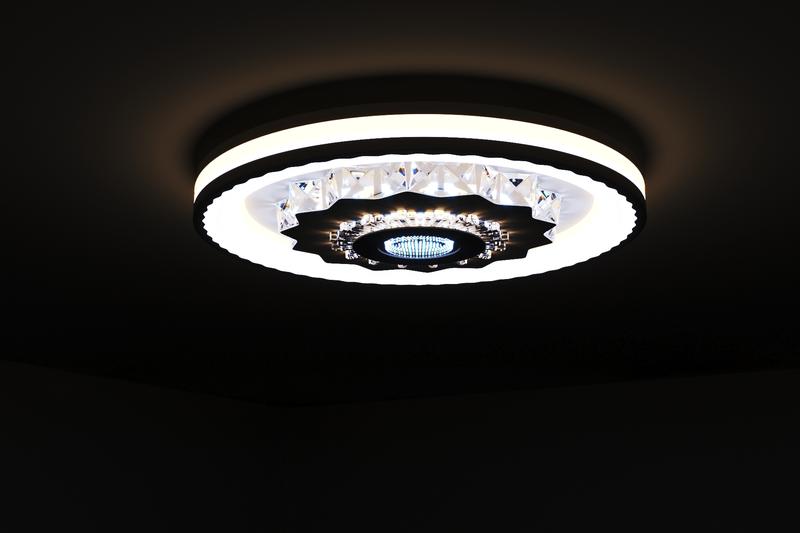 Люстра потолочная светодиодная диммируемая, CRYSTAL 3D, с ДУ, 3 режима, 480х480х60мм, 120Вт, 3000+6400K/4200K/6400+3000K, 40м, белый, 52368 0, Ritter | код 52368 0 | RITTER