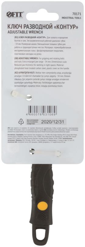 Ключ разводной ''Контур'', узкие губки, шкала, экстра увеличенный захват, ПВХ накладка на ручку 150 мм (34 мм) | код 70171 | FIT