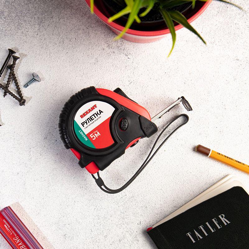 Рулетка измерительная прорезиненный корпус, магнитная , 5 м х 19 мм | код 12-9014 | REXANT