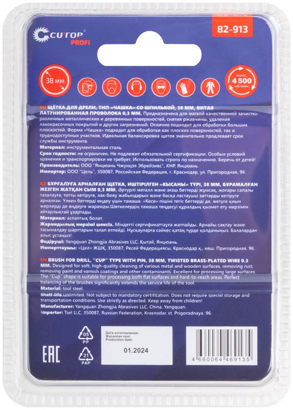 Щетка для дрели, Плоская, латунированная витая проволока 0,3 мм, 38 мм, блистер, Profi | код 82-913 | FIT