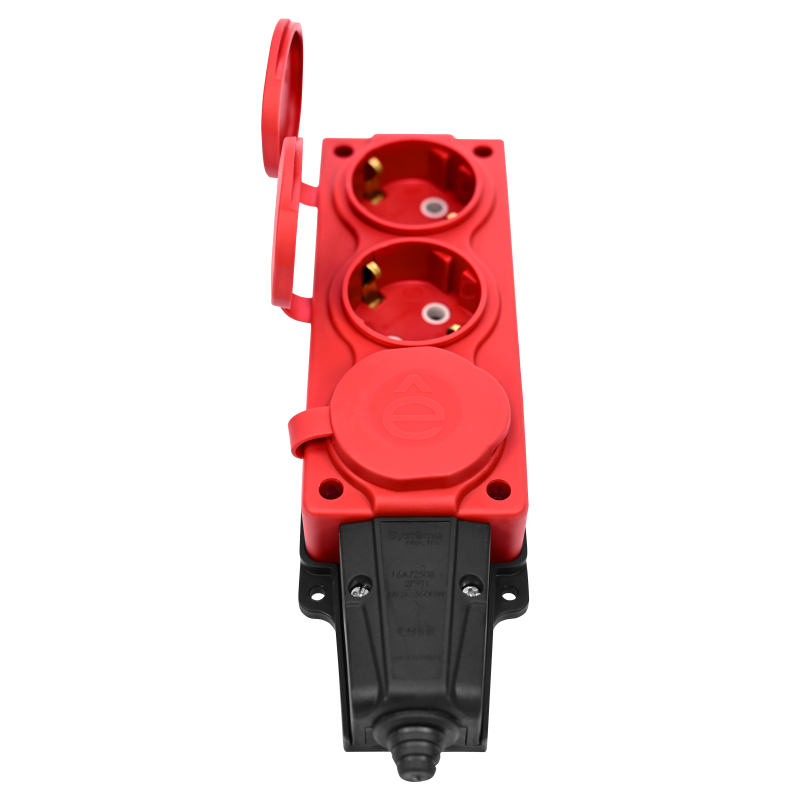 MultiSet Колодка 3х розетка 2К+З каучуковая 16А/250В IP44 Красная | код MST4123RD | Systeme Electric