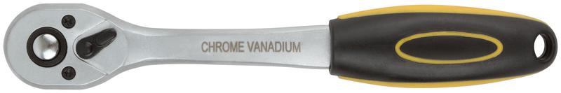 Вороток (трещотка) CrV, черно-желтая прорезиненная ручка, Профи 3/8'', 72 зубца | код 62352 | FIT