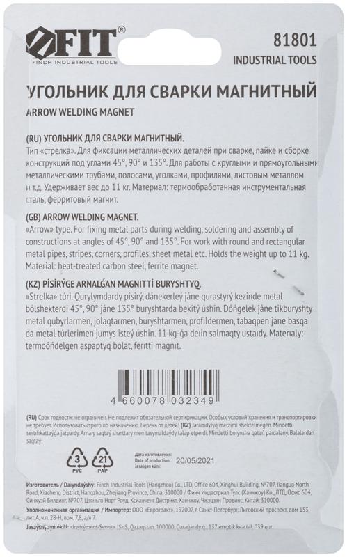Угольник для сварки магнитный, тип ''стрелка'', усилие до 11 кг | код 81801 | FIT