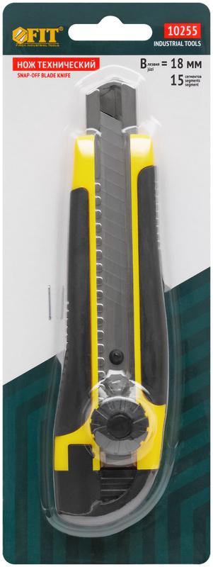 Нож технический 18 мм усиленный прорезиненный, вращ.прижим, лезвие 15 сегментов | код 10255 | FIT