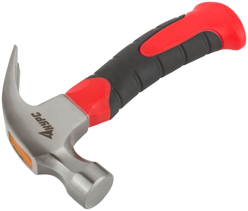 Молоток-гвоздодер, укороченный, фиброглассовая обрезиненная ручка 25 мм, 225 гр | код 44765 | FIT