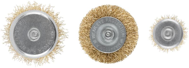 Корщетки со штифтом, набор 3 шт. ( колесо 50 мм / чашка 50 мм / венчик 25 мм ) | код 38561 | FIT