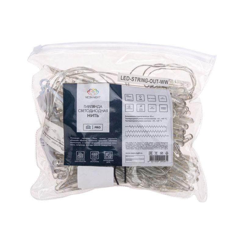 Гирлянда Нить 10 м, постоянное свечение, прозрачный ПВХ, 230 В, белый, 200 LED | код 305-195 | Neon-Night