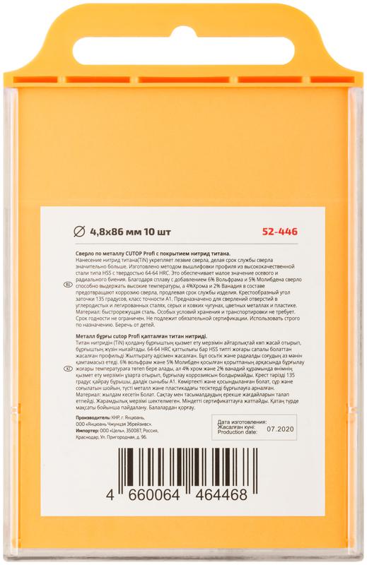Сверло по металлу Cutop Profi с титановым покрытием, 4.8х86 мм (10 шт) | код 52-446 | FIT