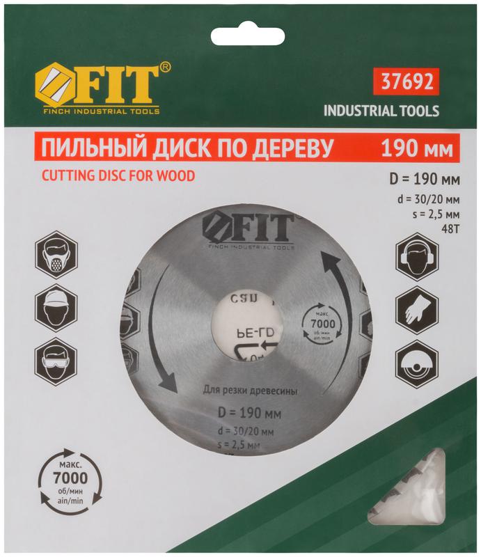 Диск пильный для циркулярных пил по дереву специальная форма зуба 190x30/20x48Т | код 37692 | FIT
