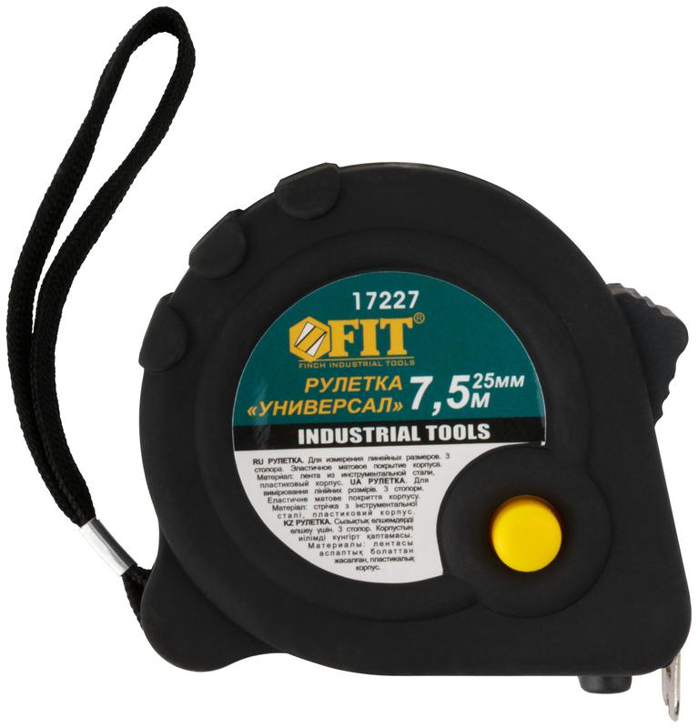 Рулетка прорезиненный корпус ''Универсал'' тройной стопор 7.5 м x 25 мм | код 17227 | FIT