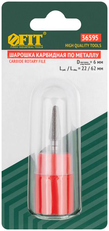 Шарошка карбидная Профи, штифт 6 мм, коническая с закруглением | код 36595 | FIT