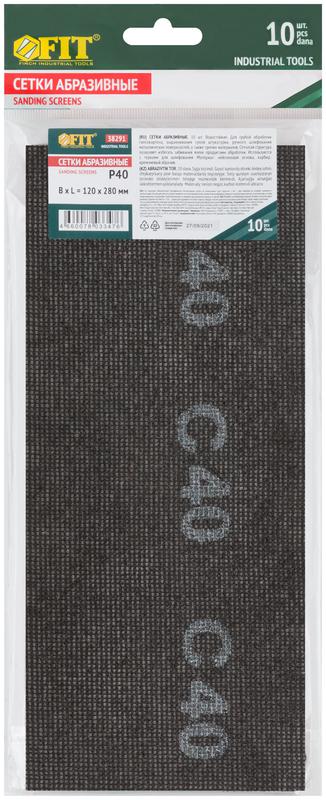 Сетки шлифовальные, нейлоновая основа, 120х280 мм, 10 шт Р 40 | код 38291 | FIT