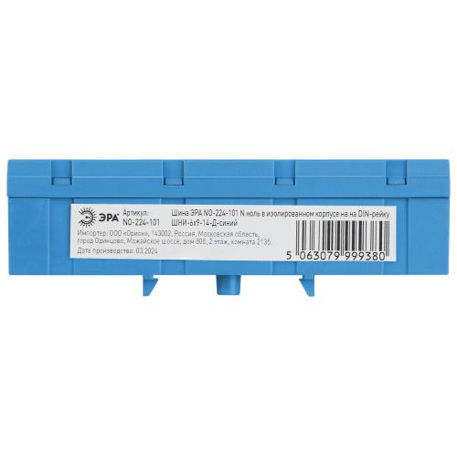 Шина N ноль в изолированном корпусе на DIN-рейку ШНИ-6х9-14-Д синий NO-224-101 | код Б0062869 | ЭРА