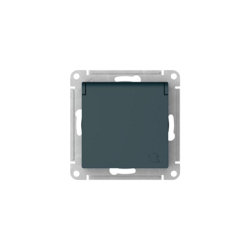 ATLASDESIGN РОЗЕТКА с заземлением со шторкой с крышкой, 16А, IP20, быстрозажимные клеммы, ИЗУМРУД | код ATN000846S | Systeme Electric