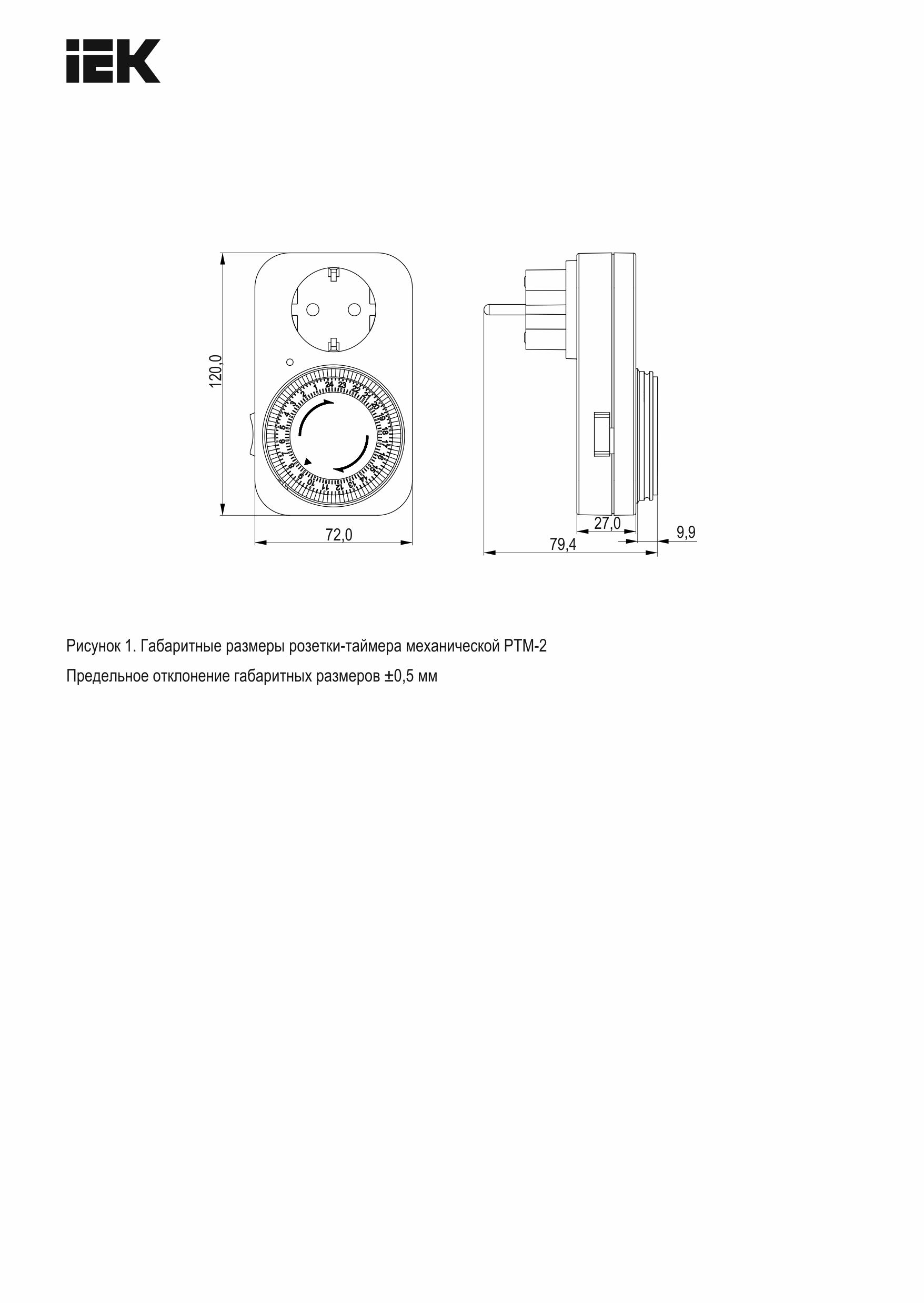 Наименование в прайсе производителя Розетка-таймер механический РТМ-2 с индикацией 15мин 24ч 96on/off 16А IP20