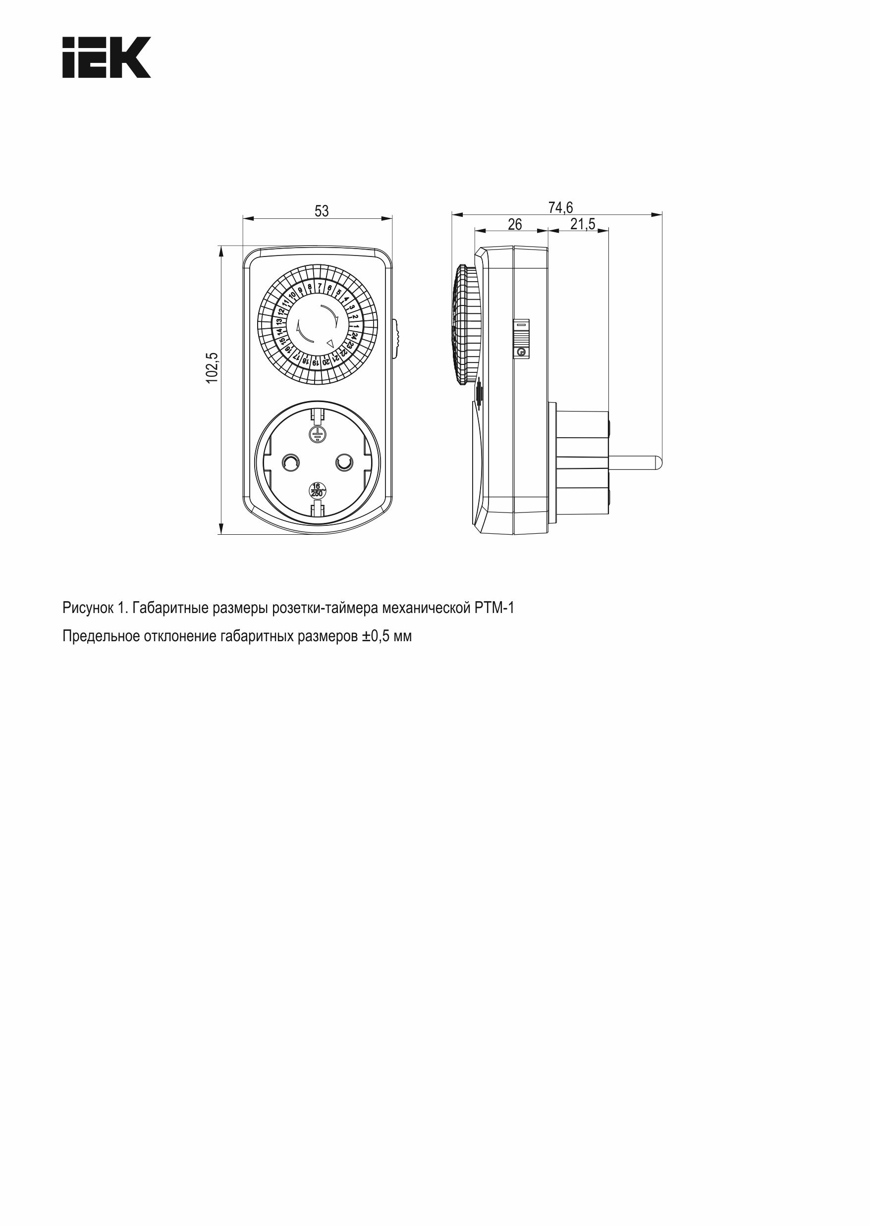 Наименование в прайсе производителя Розетка-таймер механический РТМ-1 30мин 24ч 48on/off 16А IP20