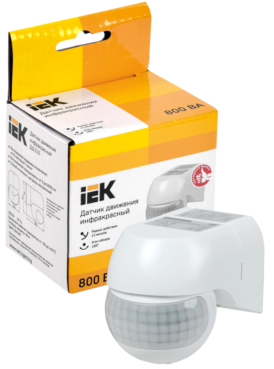 Наименование в прайсе производителя Датчик движения ДД-015 800Вт 180град 12м IP44 белый