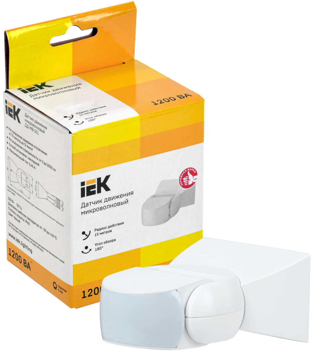 Купить Датчик движения ДД-МВ501 1200Вт 180град 15м IP65 белый | код LDD11-501MB-1200-001 | IEK | Магазин электрики - электрооборудование от разных производителей.