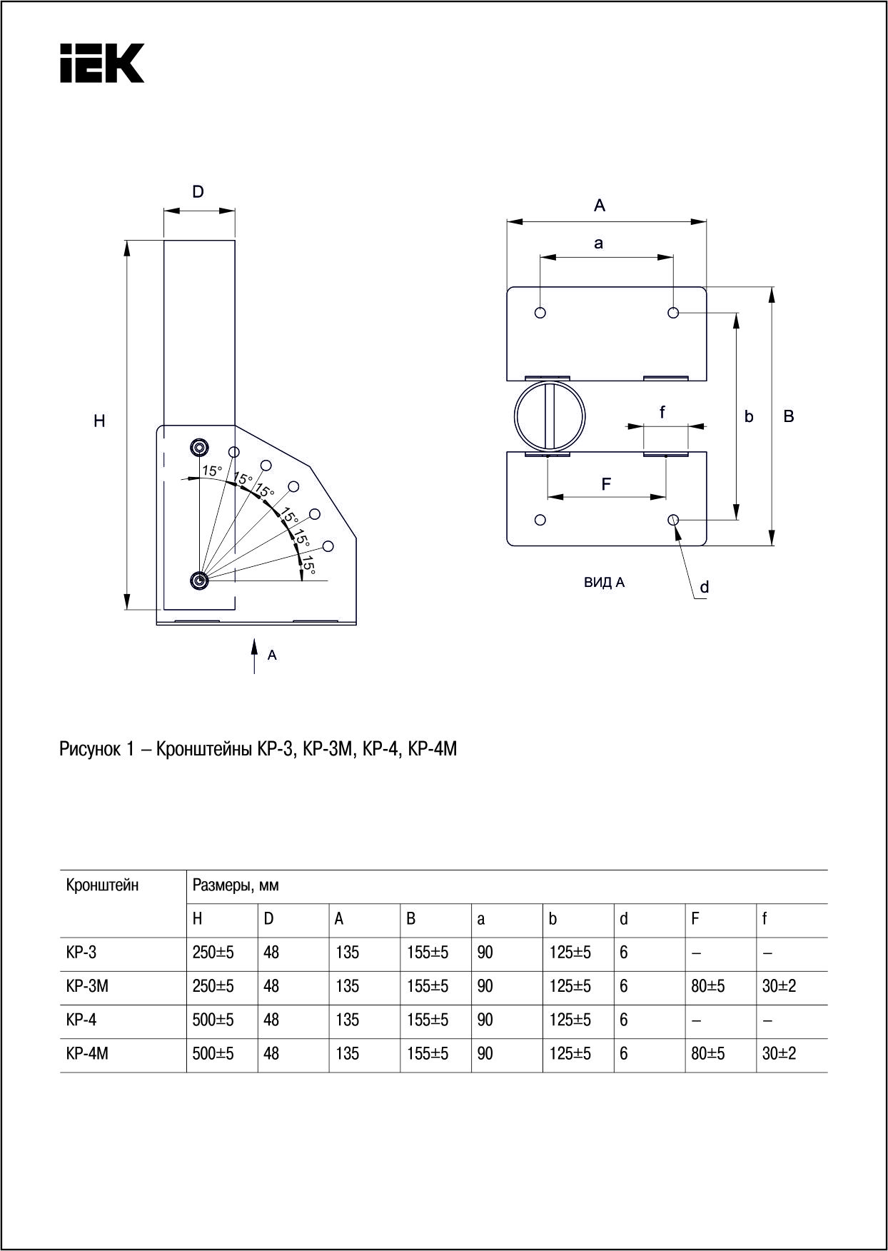 Кронштейн КР-4 D=48мм L=500мм настенный регулируемый угол белый | код LDKU0D-CR-48-0500-33-K01 | IEK