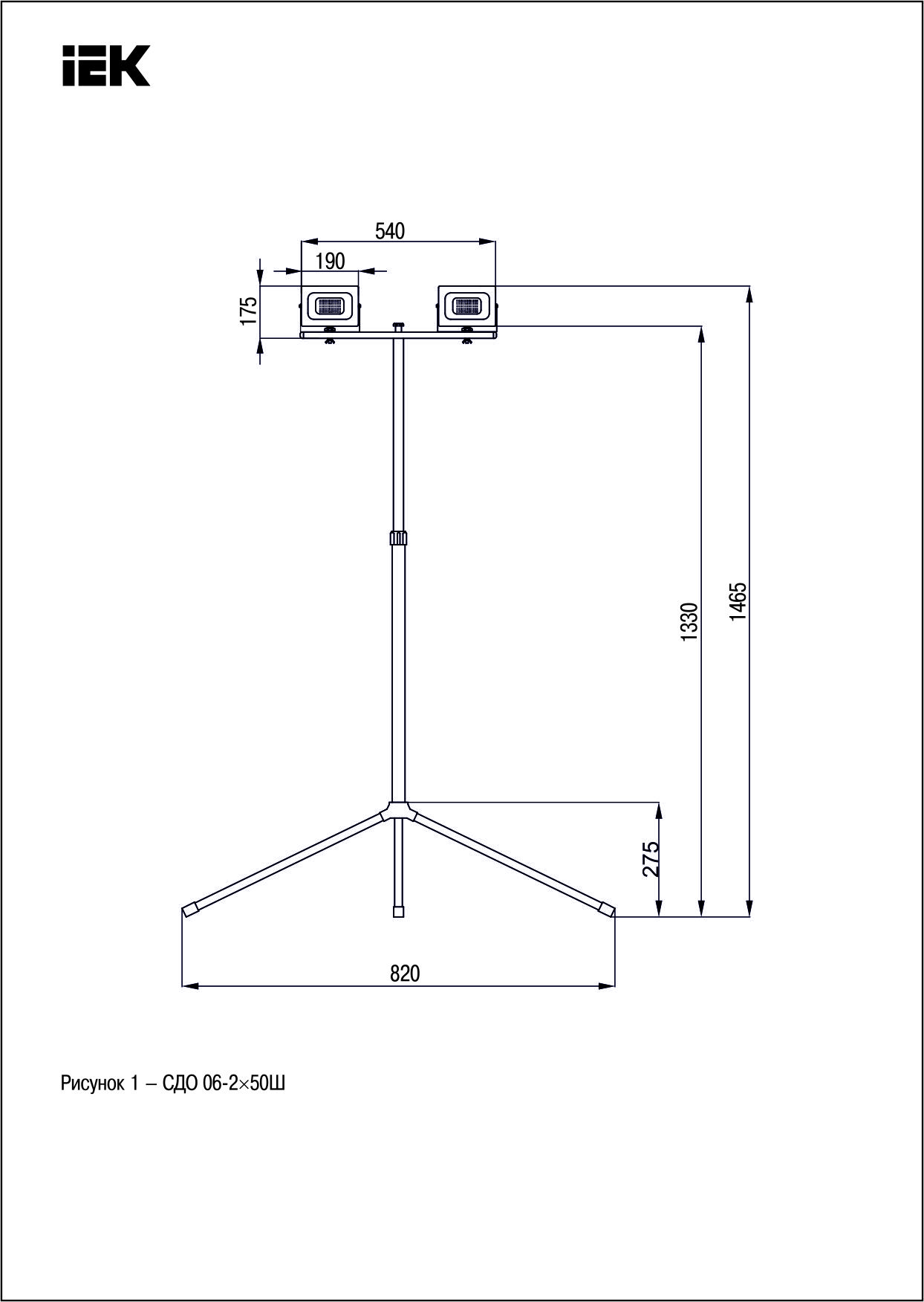 Купить Прожектор светодиодный СДО 06-2x50Ш штатив 6500К IP65 черный | код LPDO606-2X050-65-K02 | IEK | Магазин электрики - электрооборудование от разных производителей.