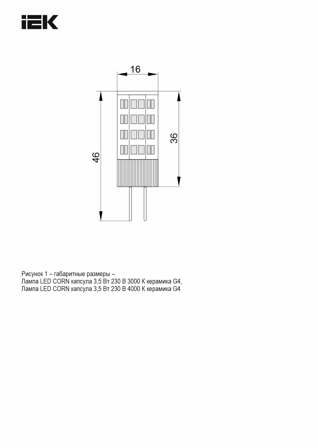 Наименование в прайсе производителя Лампа светодиодная CORN капсула 3,5Вт 230В 4000К керамика G4