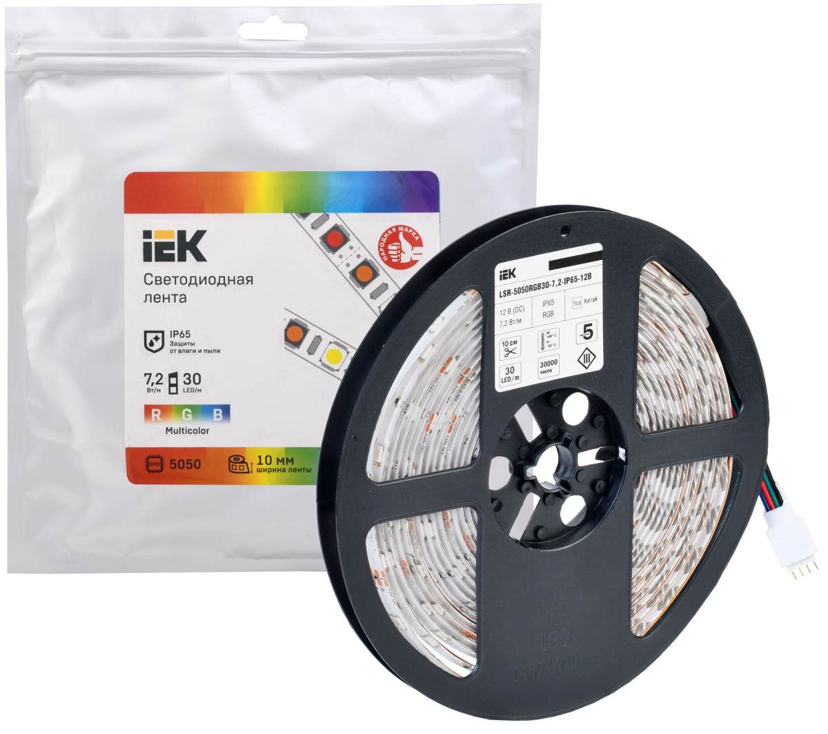 Купить Лента светодиодная 5м LSR-5050RGB30-7,2-IP65-12В | код LSR2-3-030-65-3-05 | IEK | Магазин электрики - электрооборудование от разных производителей.