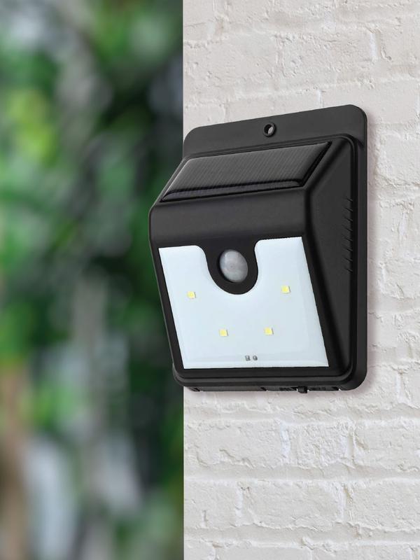 Уличный светильник на солнечной батарее с датчиком движения для удобного света на фасаде дома или беседки. Беспроводное устройство в течение дня накапливает энергию на встроенной батарее. В тёмное время суток светильник работает в режиме ночника, а при дв
