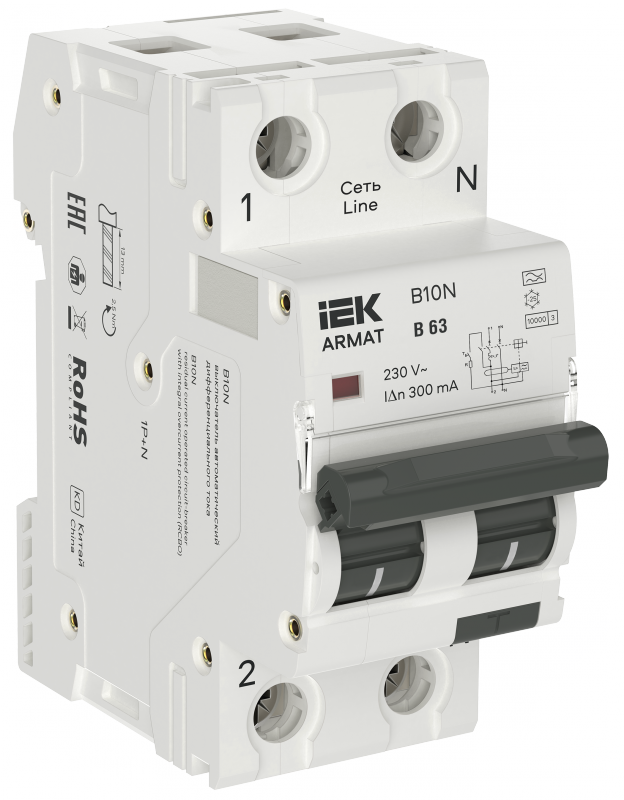 ARMAT АВДТ B10N 1P+NP B63 300мА тип A (36мм) IEK | код AR-B10N-1N-B063A300 | IEK