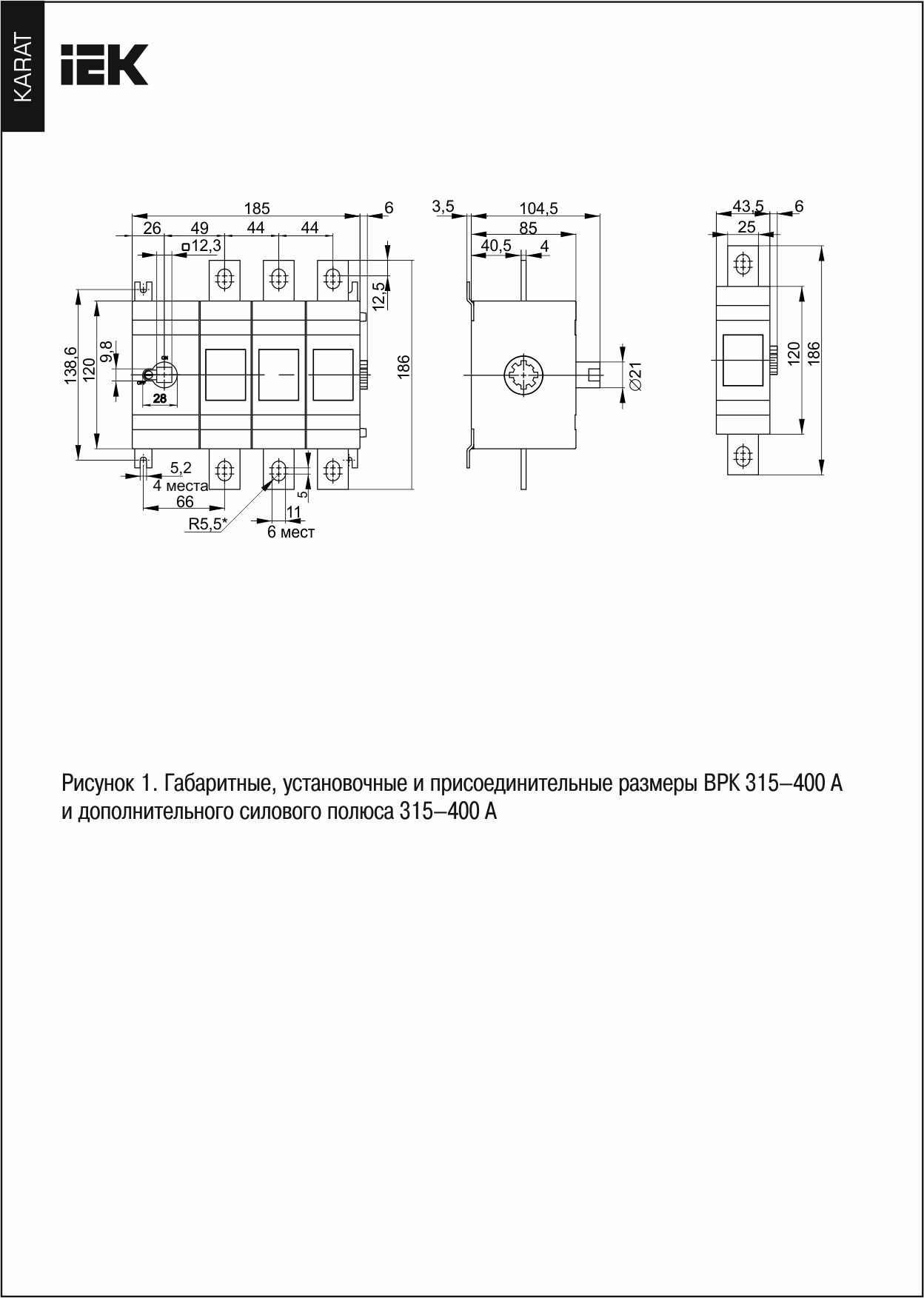 KARAT Выкл-разъед. ВРК без рукоятки 3P 315А IEK | код KA-VR10-3-0315 | IEK