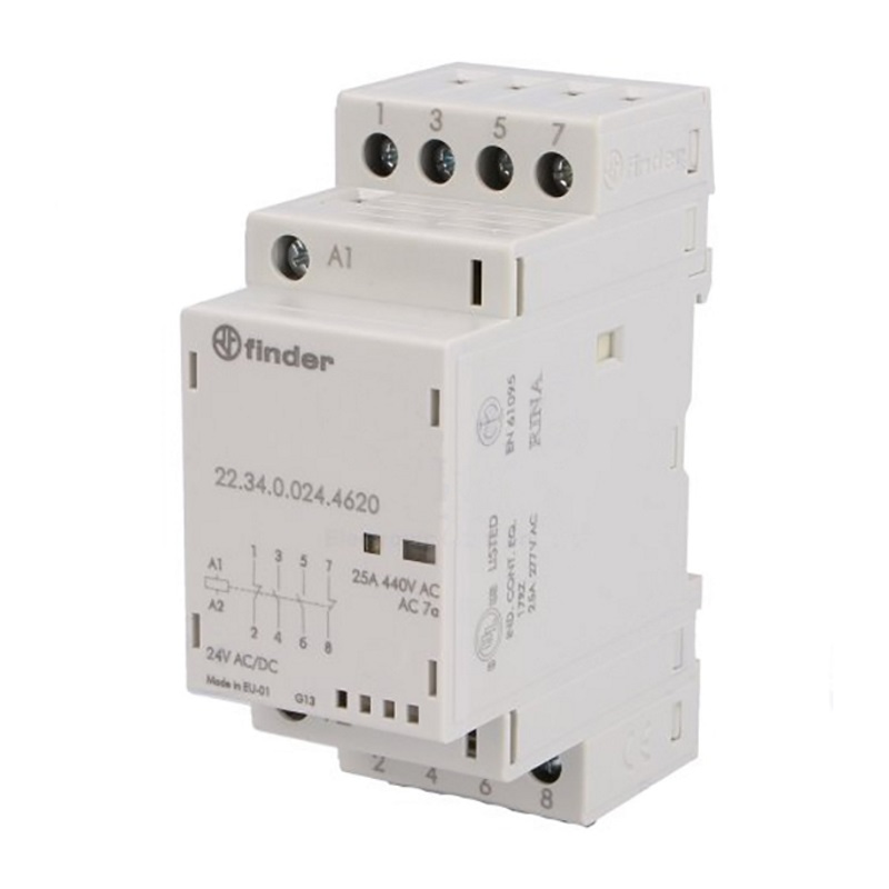 Модульный контактор, 2NO+2NC 25А, контакты AgSnO2, катушка 48В АС/DC, ширина 35мм, степень защиты IP20, опции: мех.индикатор + LED | код 223400484620 | FINDER