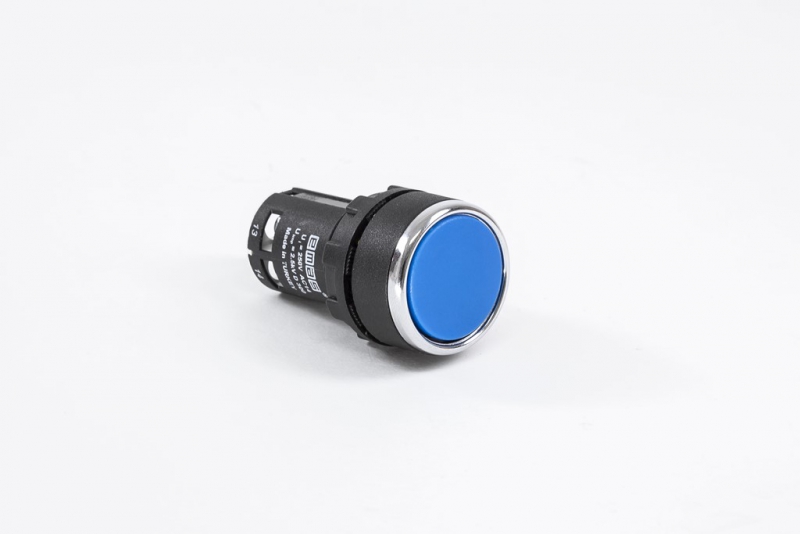 Кнопка моноблочная круглая без фиксации, синяя (1НО+1НЗ), MB102DM | код MB102DM | EMAS