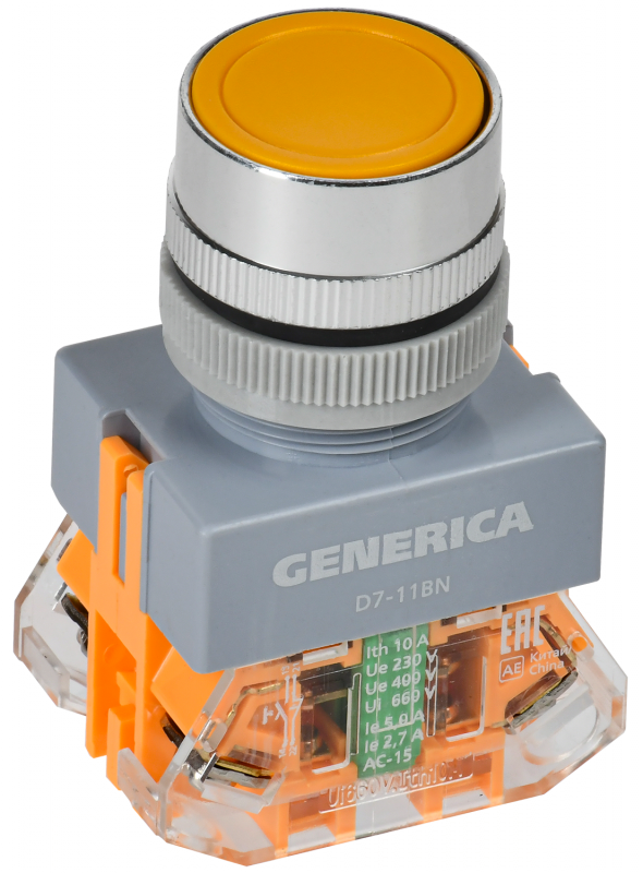 Кнопка D7-11BN d=22мм 1з+1р жел. GENERICA | код BBT50-11BN-3-22-K05-G | GENERICA by IEK