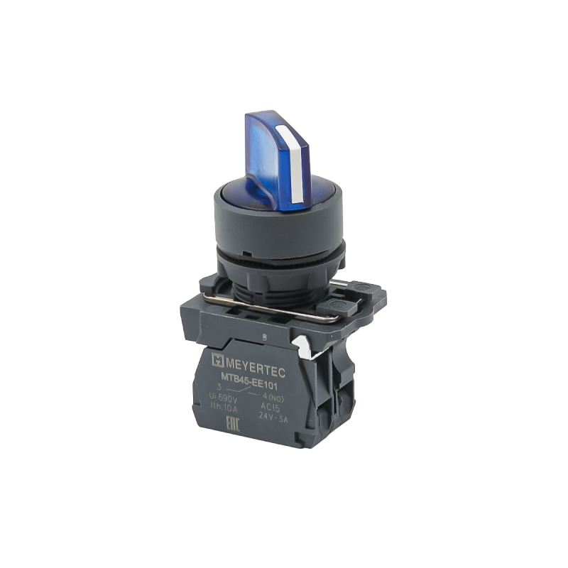 Переключатель на 3 положения с фиксацией и подсветкой, синий, 1NO, 220V AC/DC, IP65, пластик MTB5-AK36713 | код 137292 | MEYERTEC