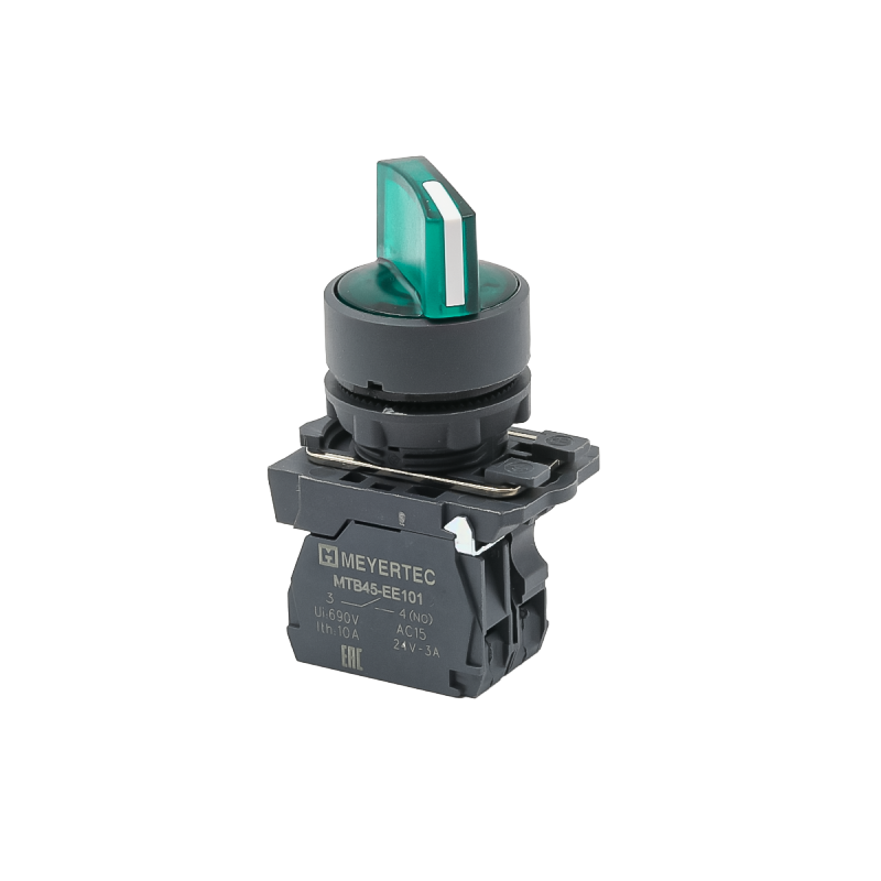Переключатель на 3 положения с фиксацией и подсветкой, зеленый, 1NO, 220V AC/DC, IP65, пластик MTB5-AK33713 | код 137289 | MEYERTEC